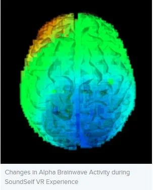 In a series of pilot studies, our team examined brain changes in relation to a variety of altered state interventions that did not involve the use of psychedelic medicines. These trials include examinations of Soma breathwork, Vibroacoustic Therapy (VAT), SoundSelf Virtual Reality meditation, and cannabis used in a psychedelic therapeutic setting (Medicinal Mindfulness). Initially, we were interested in the likelihood of decreased DMN activity, similar to that observed during the use of psychedelics and meditation as discussed above. In all of our preliminary studies, this is precisely what we found. For example, the image below is a comparison of alpha brainwave activity before and after the SoundSelf VR experience. Cooler colors (blue) indicate a decrease in activity when comparing the two recordings. As you can see, there was a significant decrease in activity observed in the area of the brain that serves as the hub of the DMN (Posterior Cingulate Cortex).
