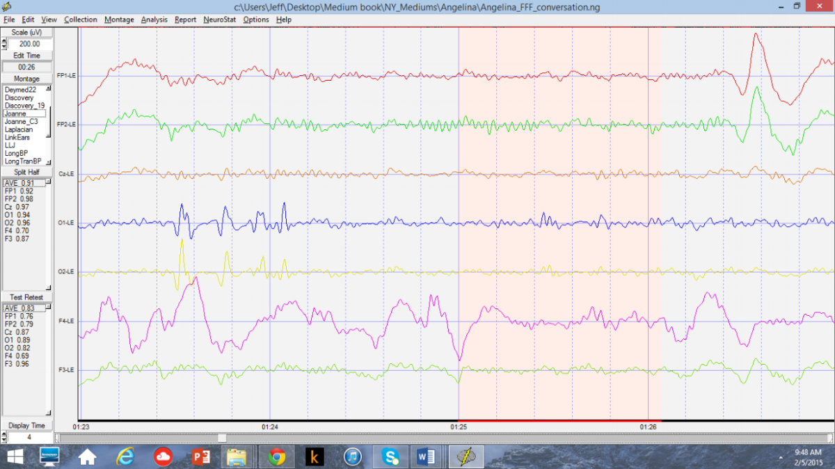 These Mediums consistently show unusual brainwave activity when they are engaged in their practice. Many of them show activity that looks like seizure activity, or tremendous increases of slow brain activity in specific regions. Another semi-consistent pattern relates to significant increases in fast activity in the back of the head-the areas of the brain associated with visual processing.